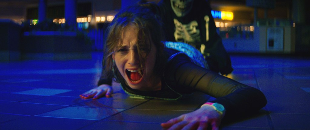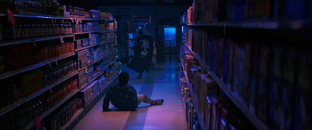 1994 draws from two major wells of teen horror. Stranger Things is the foremost influence; the drama, the stakes, and the fact that a small town’s fate rest in the hands of young people. Meanwhile, Scream‘s makeup writ large across the cold open, Janiak references one of the most taut scenes in slasher history.