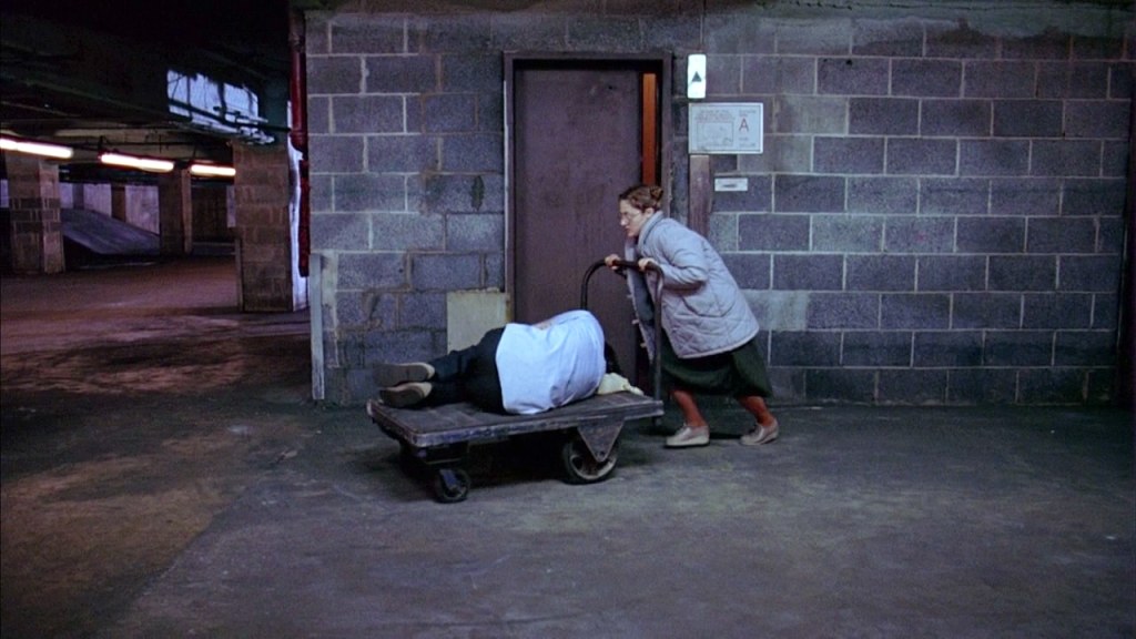 Everything changes when Dorine is summoned to work late one night by her coworker Gary (David Thornton) who needs her help fixing some equipment. When he’s then killed in a freak accident, Dorine does the unthinkable and takes the corpse home rather than calling the authorities. This is the start of her slow but eventual break from reality.